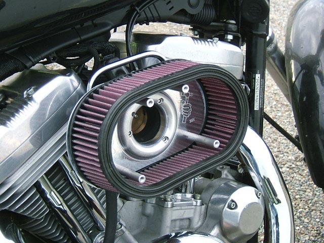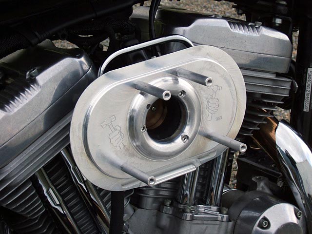 - Remove the factory air cleaner per the instructions in the service manual, leaving the carburetor or throttle body in place. EFI Sportsters have a support