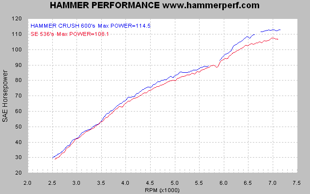 - HAMMER Crush 600 - Great street cam for 88 inchers or hot 1275's. 10.5:1 to 11:1 ideal compression ratio. Easy on the valvetrain and designed for quiet operation.